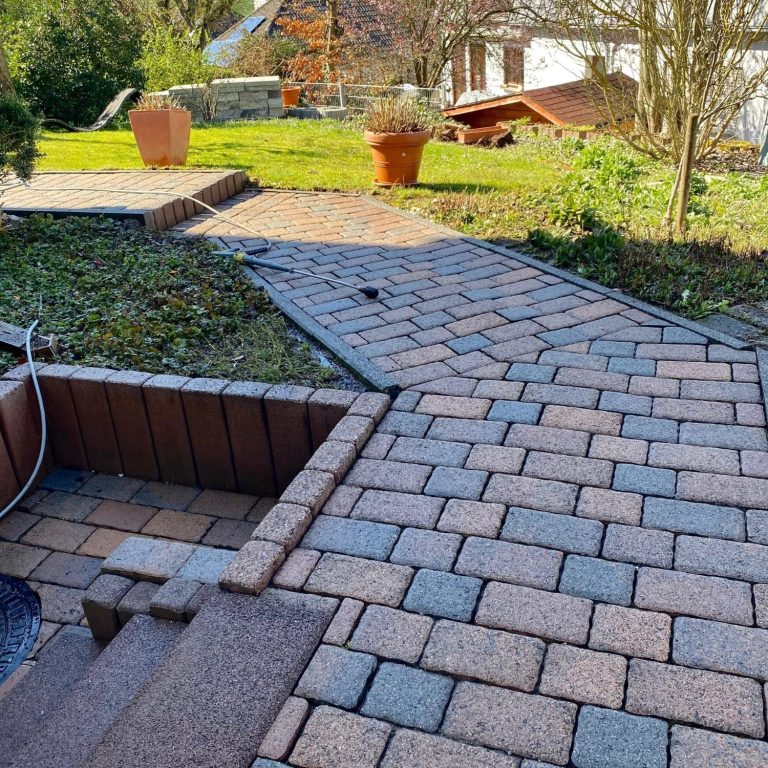 Vorteile einer wasserdurchlässigen Kunstharzverfugung: kein Unkraut mehr, keine unschönen Zementschleier, keine Leeräume durch Fugenmaterial, kein Auswaschen der Fugen durch Regen und wahlweise 3,5 t bis 40 t belastbar.